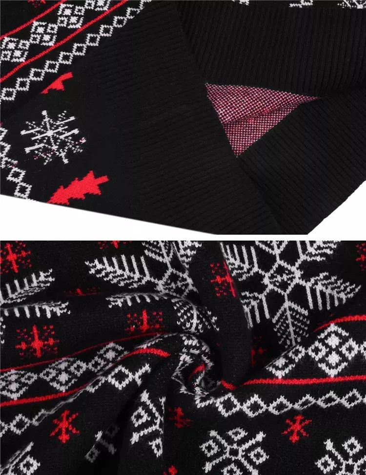 A karácsonyi pulóver sokféle formatervezésű, jacquard design lehet, teljes mértékben tükrözi a modern divatstílust és az ünnepi hangulatot, számos színre osztva a különböző családok számára a színek kiválasztásához, kötött szövet stílus puha és kényelmes, alkalmas az egész családi ruházati szövet igényeire.